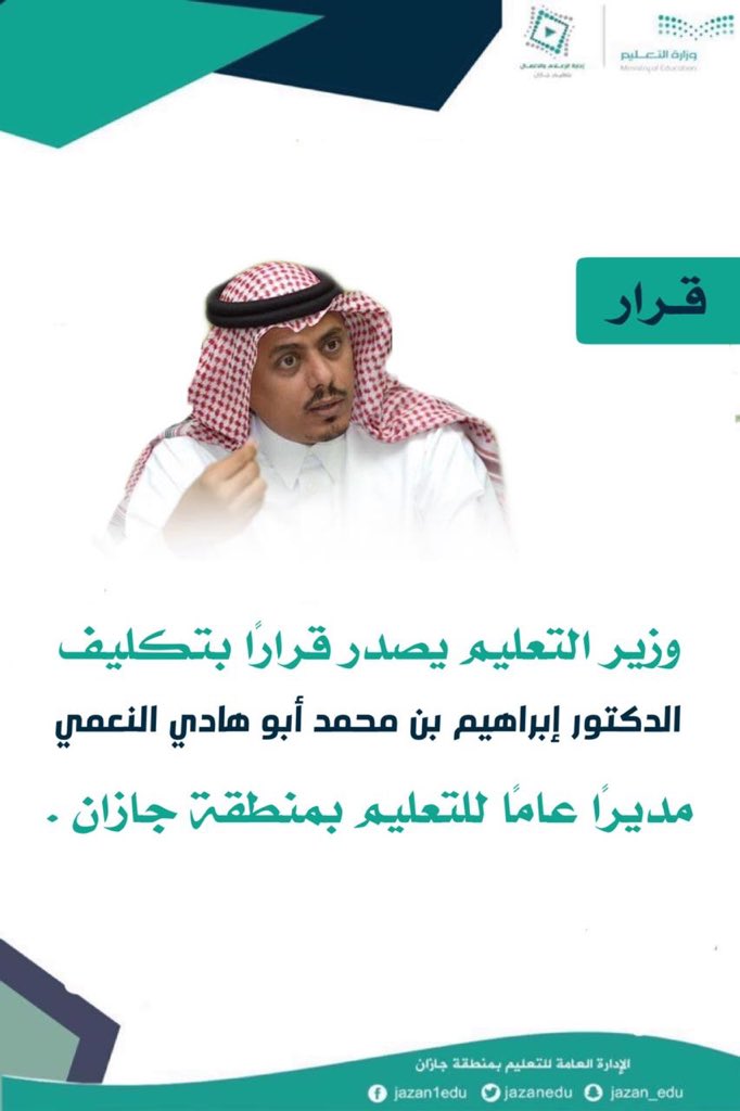إدارة تعليم جازان Ar Twitter قرار وزير التعليم يصدر قرار ا بتكليف الدكتور إبراهيم بن محمد أبو هادي النعمي مدير ا عام ا للتعليم بمنطقة جازان Moe Gov Sa Https T Co Sryhd3qop0